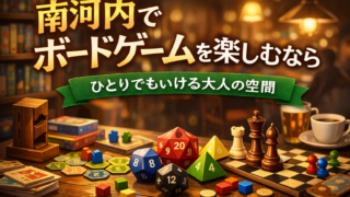 南河内エリアでボードゲームを楽しめる場所をお探しの方へ。河内長野を拠点に、1人でも通える大人向けの落ち着いたボードゲーム空間をご用意しています。富田林・大阪狭山・羽曳野などからもアクセス可能です。